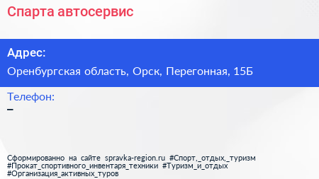 Спарта, автосервис по адресу Оренбургская область, Орск, Перегонная, 15Б в дальнейшем Организация, размещена в следующих категориях: