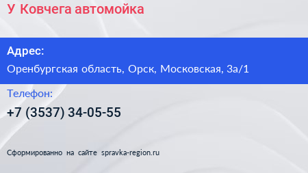 У Ковчега, автомойка по адресу Оренбургская область, Орск, Московская, 3а/1 в дальнейшем Организация, размещена в следующих категориях: