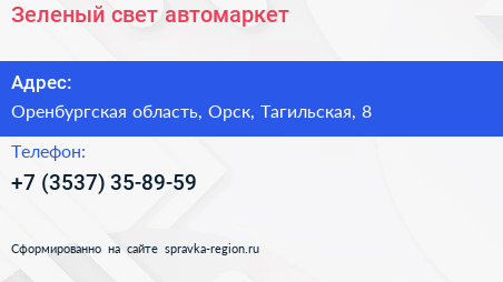 Зеленый свет, автомаркет по адресу Оренбургская область, Орск, Тагильская, 8 в дальнейшем Организация, размещена в следующих категориях: