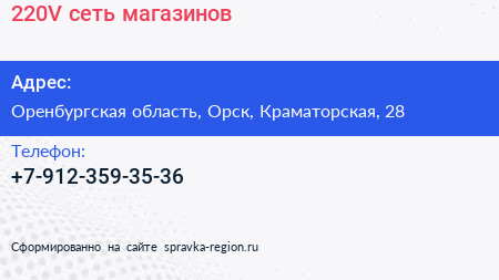 220V, сеть магазинов по адресу Оренбургская область, Орск, Краматорская, 28 в дальнейшем Организация, размещена в следующих категориях: