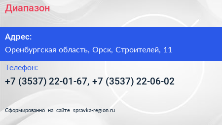Диапазон по адресу Оренбургская область, Орск, Строителей, 11 в дальнейшем Организация, размещена в следующих категориях: