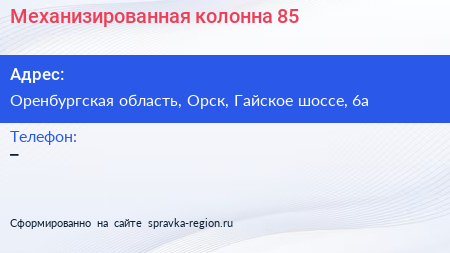 Механизированная колонна №85 по адресу Оренбургская область, Орск, Гайское шоссе, 6а в дальнейшем Организация, размещена в следующих категориях:
