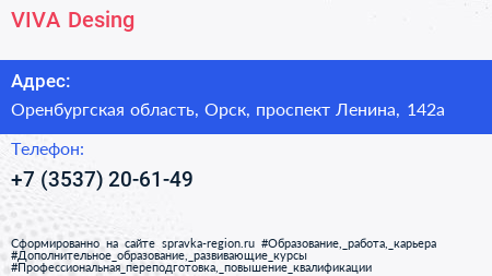 VIVA-Desing по адресу Оренбургская область, Орск, проспект Ленина, 142а в дальнейшем Организация, размещена в следующих категориях: