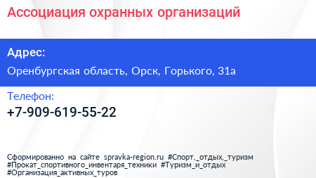 Ассоциация охранных организаций по адресу Оренбургская область, Орск, Горького, 31а в дальнейшем Организация, размещена в следующих категориях:
