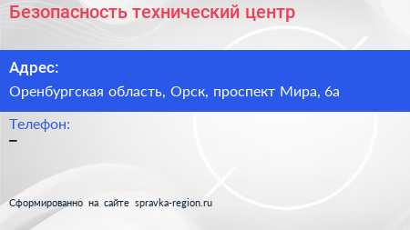 Безопасность, технический центр по адресу Оренбургская область, Орск, проспект Мира, 6а в дальнейшем Организация, размещена в следующих категориях: