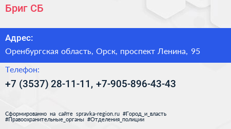 Бриг-СБ по адресу Оренбургская область, Орск, проспект Ленина, 95 в дальнейшем Организация, размещена в следующих категориях: