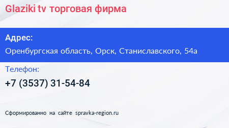 Glaziki.tv, торговая фирма по адресу Оренбургская область, Орск, Станиславского, 54а в дальнейшем Организация, размещена в следующих категориях:
