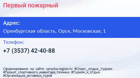 Первый пожарный по адресу Оренбургская область, Орск, Московская, 1 в дальнейшем Организация, размещена в следующих категориях: