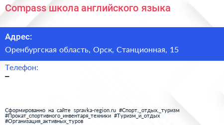 Compass, школа английского языка по адресу Оренбургская область, Орск, Станционная, 15 в дальнейшем Организация, размещена в следующих категориях: