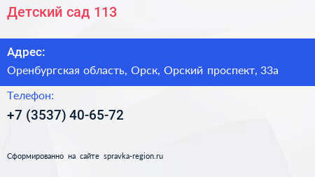 Детский сад №113 по адресу Оренбургская область, Орск, Орский проспект, 33а в дальнейшем Организация, размещена в следующих категориях: