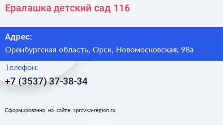 Ералашка, детский сад №116 по адресу Оренбургская область, Орск, Новомосковская, 98а в дальнейшем Организация, размещена в следующих категориях: