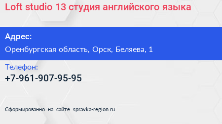 Loft studio #13, студия английского языка по адресу Оренбургская область, Орск, Беляева, 1 в дальнейшем Организация, размещена в следующих категориях: