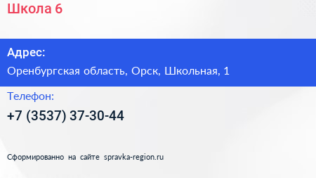 Школа №6 по адресу Оренбургская область, Орск, Школьная, 1 в дальнейшем Организация, размещена в следующих категориях: