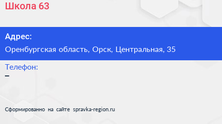 Школа №63 по адресу Оренбургская область, Орск, Центральная, 35 в дальнейшем Организация, размещена в следующих категориях: