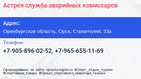 Астрея, служба аварийных комиссаров по адресу Оренбургская область, Орск, Строителей, 33а в дальнейшем Организация, размещена в следующих категориях: