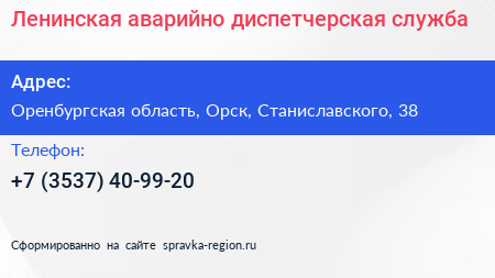 Ленинская аварийно-диспетчерская служба по адресу Оренбургская область, Орск, Станиславского, 38 в дальнейшем Организация, размещена в следующих категориях: