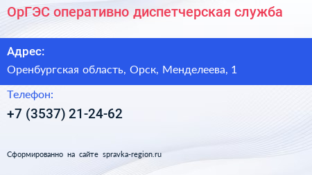 ОрГЭС, оперативно-диспетчерская служба по адресу Оренбургская область, Орск, Менделеева, 1 в дальнейшем Организация, размещена в следующих категориях: