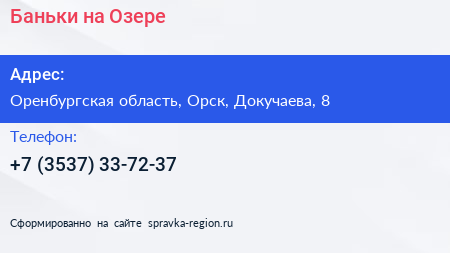 Баньки на Озере по адресу Оренбургская область, Орск, Докучаева, 8 в дальнейшем Организация, размещена в следующих категориях: