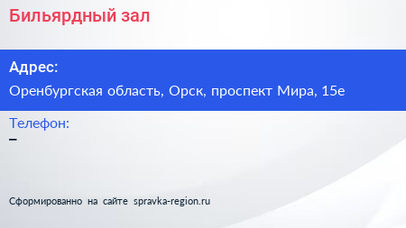 Бильярдный зал по адресу Оренбургская область, Орск, проспект Мира, 15е в дальнейшем Организация, размещена в следующих категориях: