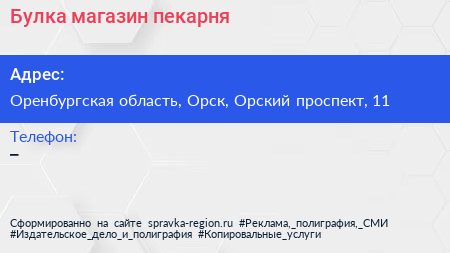 Булка, магазин-пекарня по адресу Оренбургская область, Орск, Орский проспект, 11 в дальнейшем Организация, размещена в следующих категориях: