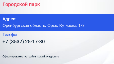 Городской парк по адресу Оренбургская область, Орск, Кутузова, 1/3 в дальнейшем Организация, размещена в следующих категориях: