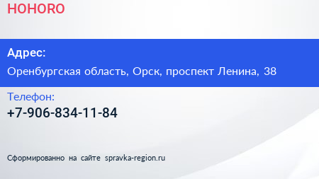 HOHORO по адресу Оренбургская область, Орск, проспект Ленина, 38 в дальнейшем Организация, размещена в следующих категориях: