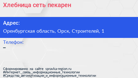 Хлебница, сеть пекарен по адресу Оренбургская область, Орск, Строителей, 1 в дальнейшем Организация, размещена в следующих категориях: