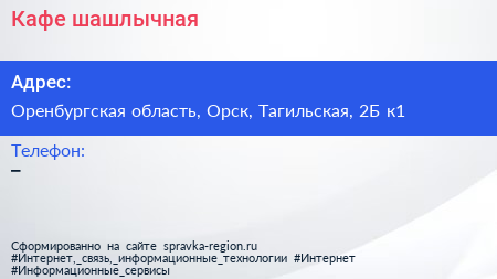 Кафе-шашлычная по адресу Оренбургская область, Орск, Тагильская, 2Б к1 в дальнейшем Организация, размещена в следующих категориях: