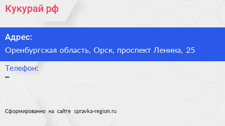 Кукурай.рф по адресу Оренбургская область, Орск, проспект Ленина, 25 в дальнейшем Организация, размещена в следующих категориях: