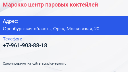 Марокко, центр паровых коктейлей по адресу Оренбургская область, Орск, Московская, 20 в дальнейшем Организация, размещена в следующих категориях: