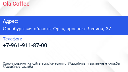 Ola! Coffee по адресу Оренбургская область, Орск, проспект Ленина, 37 в дальнейшем Организация, размещена в следующих категориях: