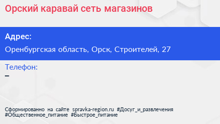 Орский каравай, сеть магазинов по адресу Оренбургская область, Орск, Строителей, 27 в дальнейшем Организация, размещена в следующих категориях:
