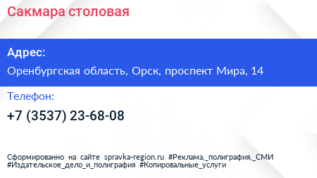 Сакмара, столовая по адресу Оренбургская область, Орск, проспект Мира, 14 в дальнейшем Организация, размещена в следующих категориях: