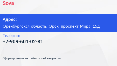 Sova по адресу Оренбургская область, Орск, проспект Мира, 15д в дальнейшем Организация, размещена в следующих категориях: