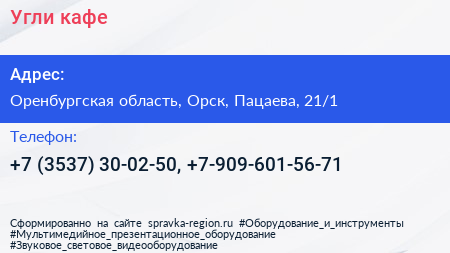 Угли, кафе по адресу Оренбургская область, Орск, Пацаева, 21/1 в дальнейшем Организация, размещена в следующих категориях: