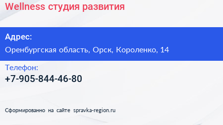 Wellness, студия развития по адресу Оренбургская область, Орск, Короленко, 14 в дальнейшем Организация, размещена в следующих категориях: