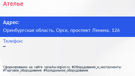 Ателье по адресу Оренбургская область, Орск, проспект Ленина, 126 в дальнейшем Организация, размещена в следующих категориях:
