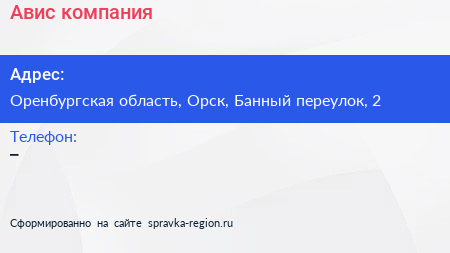 Авис, компания по адресу Оренбургская область, Орск, Банный переулок, 2 в дальнейшем Организация, размещена в следующих категориях: