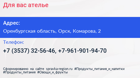 Для вас, ателье по адресу Оренбургская область, Орск, Комарова, 2 в дальнейшем Организация, размещена в следующих категориях: