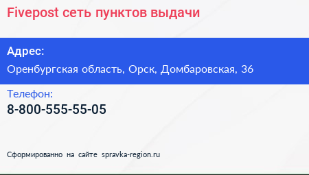 Fivepost, сеть пунктов выдачи по адресу Оренбургская область, Орск, Домбаровская, 36 в дальнейшем Организация, размещена в следующих категориях: