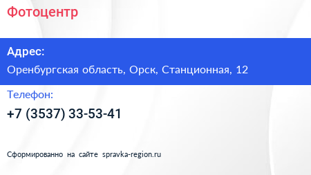Фотоцентр по адресу Оренбургская область, Орск, Станционная, 12 в дальнейшем Организация, размещена в следующих категориях: