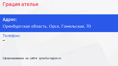 Грация, ателье по адресу Оренбургская область, Орск, Гомельская, 70 в дальнейшем Организация, размещена в следующих категориях: