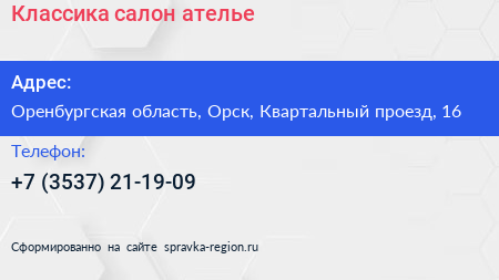 Классика, салон-ателье по адресу Оренбургская область, Орск, Квартальный проезд, 16 в дальнейшем Организация, размещена в следующих категориях: