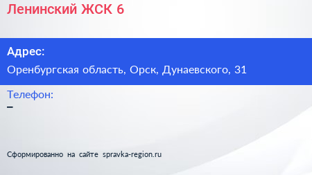 Ленинский ЖСК-6 по адресу Оренбургская область, Орск, Дунаевского, 31 в дальнейшем Организация, размещена в следующих категориях: