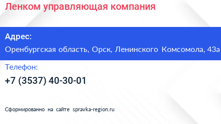 Ленком, управляющая компания по адресу Оренбургская область, Орск, Ленинского Комсомола, 43а в дальнейшем Организация, размещена в следующих категориях: