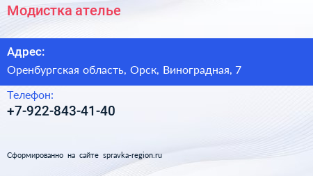 Модистка, ателье по адресу Оренбургская область, Орск, Виноградная, 7 в дальнейшем Организация, размещена в следующих категориях: