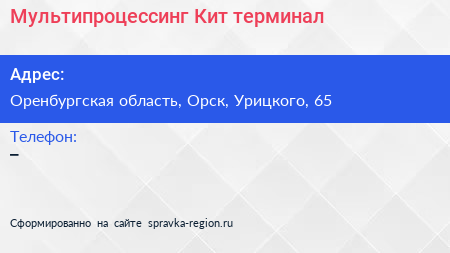 Мультипроцессинг Кит, терминал по адресу Оренбургская область, Орск, Урицкого, 65 в дальнейшем Организация, размещена в следующих категориях: