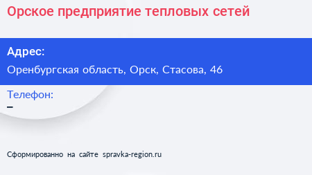 Орское предприятие тепловых сетей по адресу Оренбургская область, Орск, Стасова, 46 в дальнейшем Организация, размещена в следующих категориях: