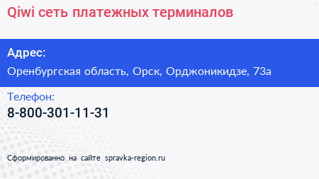 Qiwi, сеть платежных терминалов по адресу Оренбургская область, Орск, Орджоникидзе, 73а в дальнейшем Организация, размещена в следующих категориях: