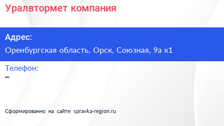 Уралвтормет, компания по адресу Оренбургская область, Орск, Союзная, 9а к1 в дальнейшем Организация, размещена в следующих категориях:
